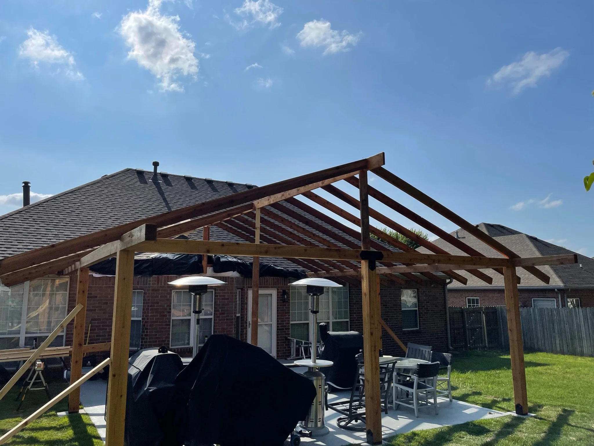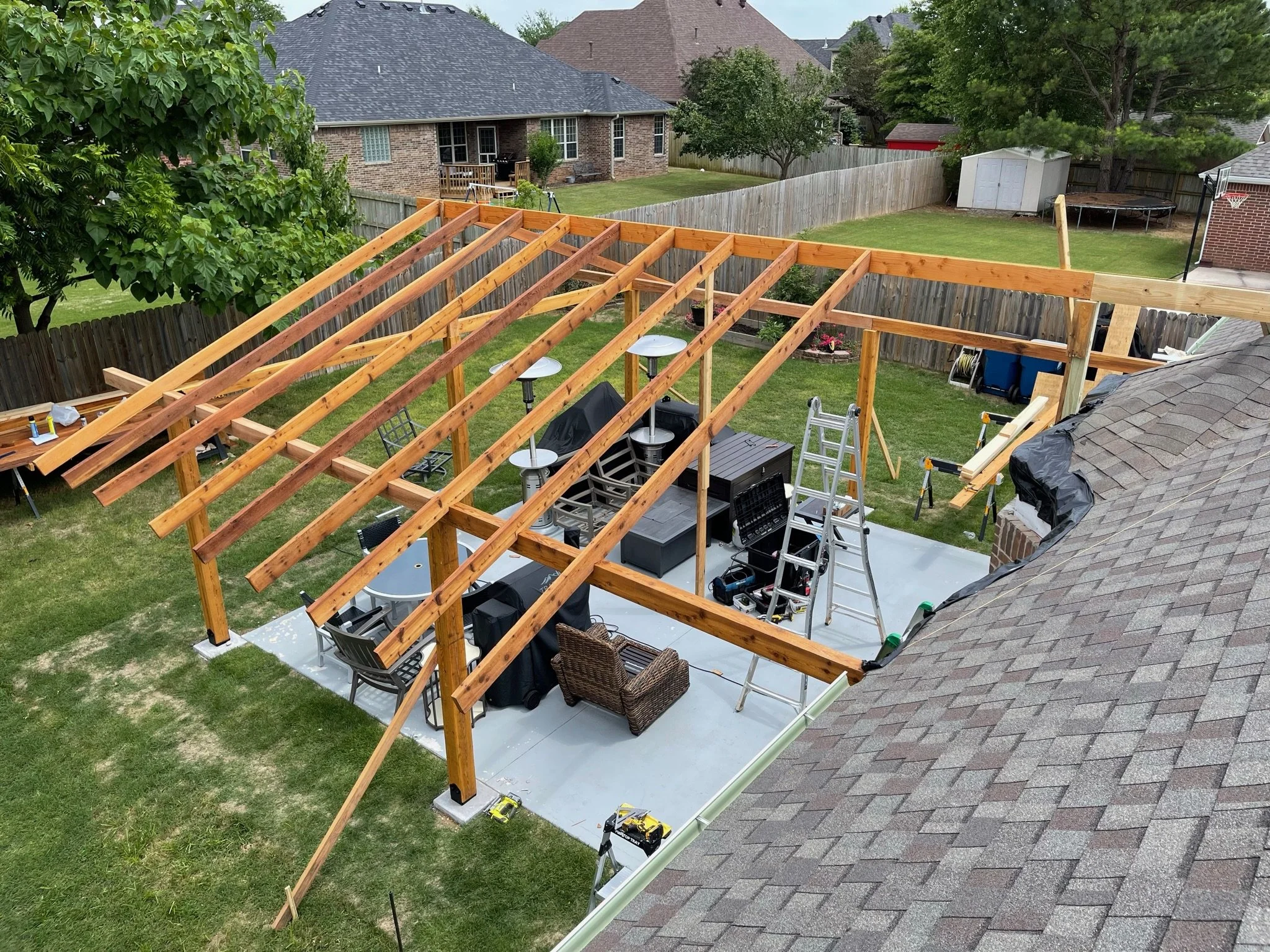 In Progress: Pergola over existing pad In Progress: Pergola Finished: Pergola Finished: Pergola Finished: Pergola